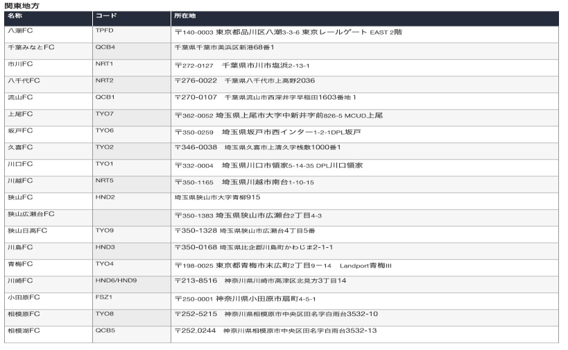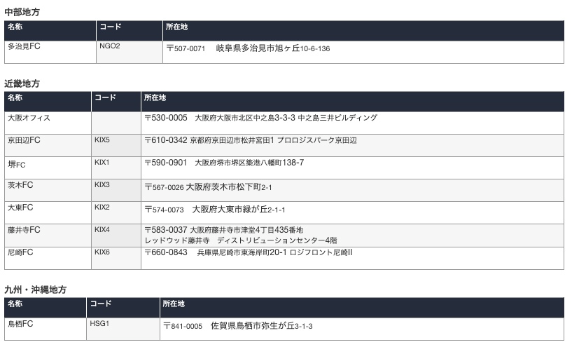 アマゾンFBAフルフィルメントセンター(FC)の情報を下記にまとめました。